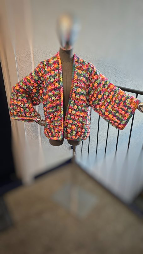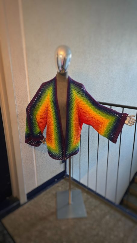 Pflege & Verhalten gehäkelter Kleidung: Gehäkelteteile verhalten sich anders als industriell genähte Kleidung. Sie sind weich, flexibel und können sich durch Tragen oder Waschen leicht verändern. Für lange Freude empfehle ich schonende Handwäsche und liegendes Trocknen.
